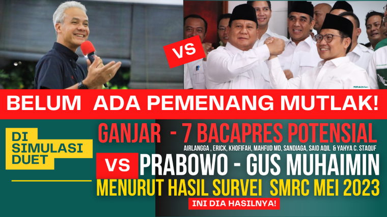 Belum Ada Pemenang Mutlak, Hasil Simulasi Duet Ganjar-7 Bacapres Potensial Vs Prabowo-Muhaimin di Survei SMRC Mei 2023