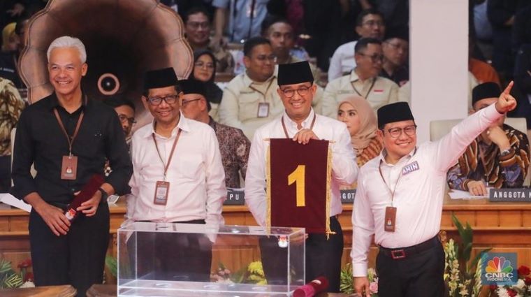 Seperti diketahui, KPU melakukan pengundian nomor urut peserta Pilpres 2024. Anies Baswedan-Muhaimin Iskandar (Cak Imin) mendapat nomor urut 1, Prabowo Subianto-Gibran Rakabuming Raka mendapat nomor urut 2, Ganjar Pranowo-Mahfud Md mendapat nomor urut 3.