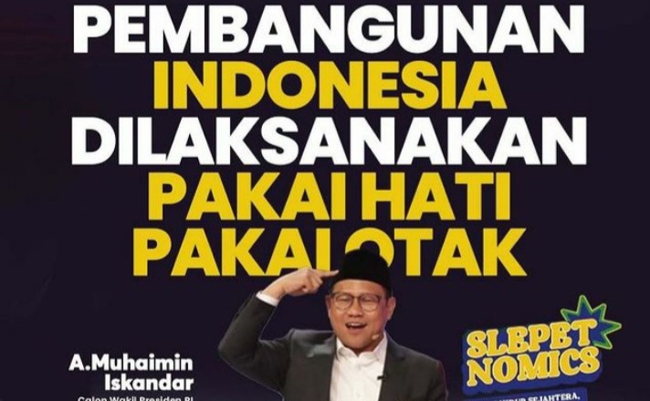 Cawapres dari nomor urut satu, Muhaimin Iskandar mendapatkan kesempatan terakhir dalam membacakan visi dan misinya dalam hal ekonomi. Menggunakan sarung yang dikalungkan di leher, Cak Imin menjelaskan visi misinya dengan analogi slepet sarung bagi santri.