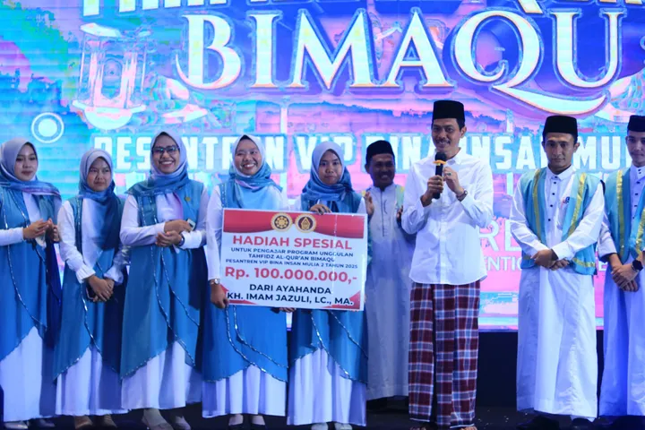 “Dari 822 santri, 309 sudah hafal 30 juz. Sisanya ada yang hafal 25, 20, 10, bahkan 5 juz. Semua progress-nya luar biasa,” ujar Kiai Jazuli dalam acara Wisuda Tahfidz Akbar BimaQu, Sabtu-Minggu (28–29 Juni 2025).