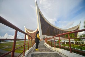 Masjid Raya Sumatera Barat (Sumbar), di Padang, Masjid yang meraih penghargaan sebagai masjid dengan desain arsitektur terbaik di dunia dalam kompetisi Arsitektur Masjid Abdullatif Al Fozan tahun 2021 – FOTO | Dok. kompas travel