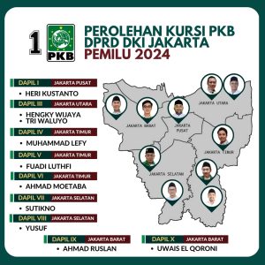 PKBTalk24 | Jakarta ~ DPW Partai Kebangkitan Bangsa (PKB) DKI Jakarta mendapatkan 10 kursi DPRD DKI Jakarta berdasarkan rekapitulasi tingkat kota dan kabupaten telah selesai dilakukan pada Sabtu (9/3/2024).