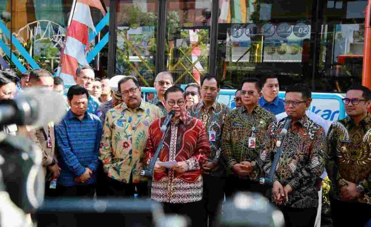 Peluncuran layanan transportasi baru, Transjabodetabek rute S61 (Alam Sutera–Blok M), oleh Gubernur DKI Jakarta Pramono Anung, Wakil Gubernur Rano Karno, dihadiri oleh Gubernur Banten Andra Soni, dan Wakil Wali Kota Tangerang Selatan Pilar Saga Ichsan, Kamis (24/4/2025). FOTO | Dok. jakarta.go.id
