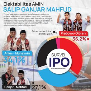 Survei IPO ini diselenggarakan pada 10 – 17 November 2023 dengan jumlah 1400 responden yang tersebar di seluruh Indonesia. Wawancara responden secara langsung dan dipilih menggunakan metode multistage random sampling, dengan margin of error kurang lebih 2,5 persen. Lalu, bagaimana perbandingannya dengan hasil survei sejumlah lembaga lain? Berikut rangkumannya. (***)